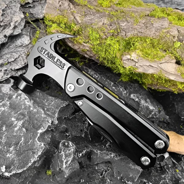 Το πολυεργαλείο HANDINOX συνδυάζει σφυρί, πένσα, μαχαίρι, κατσαβίδι και πολλά άλλα. Ιδανικό για κάθε εργασία, από κάμπινγκ μέχρι κατασκευές DIY.